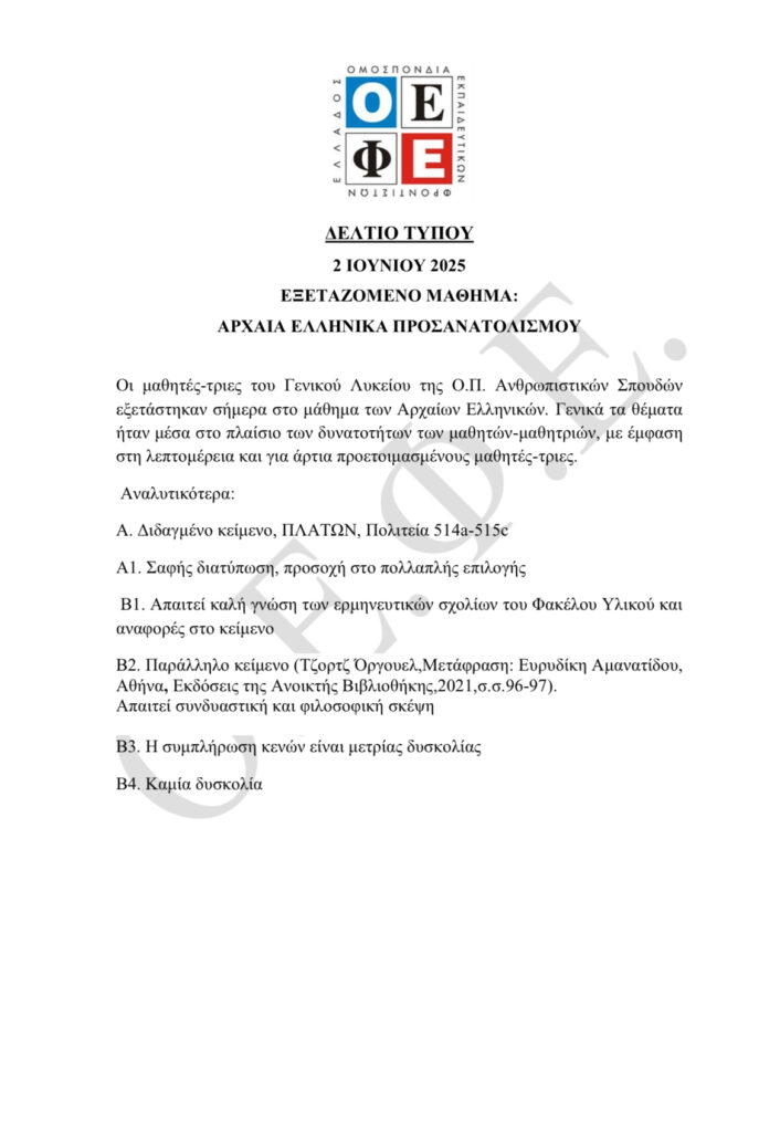 Μπορείτε να βρείτε εδώ 👇 το δελτίο τύπου του ΟΕΦΕ: